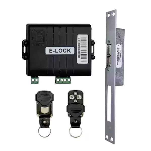 پکیج قفل مقابل برقی ارزان از یک کلید وایرلس و یا دو عدد ریموت کنترل که دارای قابلیت های خاص خود است استفاده می نماید و از یک ترانس تغذیه نیز برخورداراست.کافیست قسمت سخت افزاری را بر روی درب نصب نموده و سیم بوبین قفل مقابل برقی را در ترمینال خروجی ماژول قرار دهیم و تغذیه قفل برقی را به برق شهری اتصال دهیم.فرکانس کاری ریموت و کلید وایرلس 433.92MHz نیز می توان استفاده نمود.قفل مقابل برقی استفاده شده در پک ارزان مقابل برقی از نوع تابا و الکتروپیک است که از یک مغزی و یک صفحه یا براکت تولید گشته است.