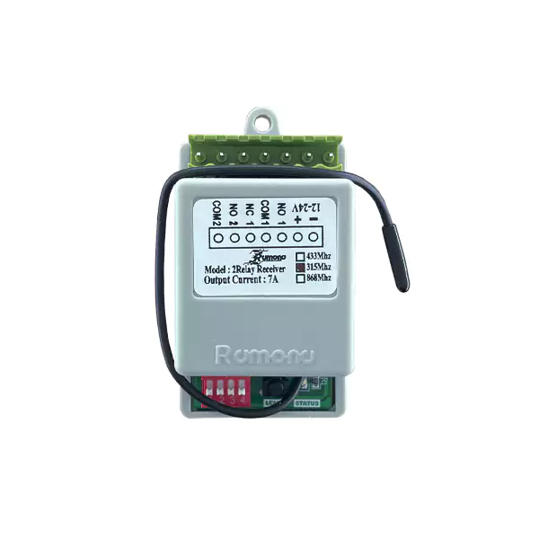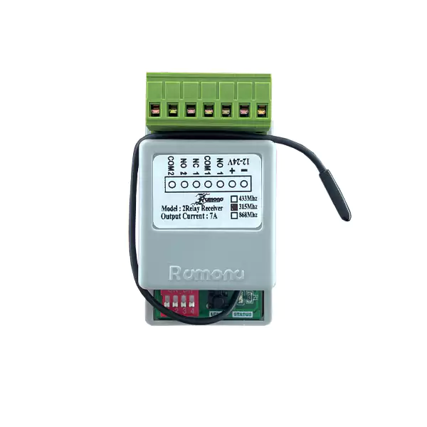برای کنترل بسیاری از لوازم و دیوایس های برقی نیاز به استفاده از ریموت و رسیور داریم و شرکت های تولید کننده ایرانی و خارجی زیادی مشغول به تولید این محصولات می باشند.برند رامونا یکی از خوش نام های تولید کننده مدار جک رامونا است و در کنار آن اکسسوری های دیگر نیز برای تولید و ارائه دارد.رسیور 2 رله تایم دار رامونا فرکانس 315 لرنینگ از حافظه 50 ععدی مچ کردن ریموت و در ابعاد بسیار کوچک و ورودی های ترمینالی که کار سربندی را بسیار ساده میکند به همراه یک دکمه لرن و چراغ ال ای دی قرمز برای اتصال آماده می باشد.ورودی این گیرنده دو رله رامونا به ترتیب برق اصلی و رله اول و رله دوم است و دارای 4 دیپ سوئیچ برای تعیین مد می باشد.برق مناسب این مدل رسیور رامونا 12 ولت 1 تا 5 آمپر است.