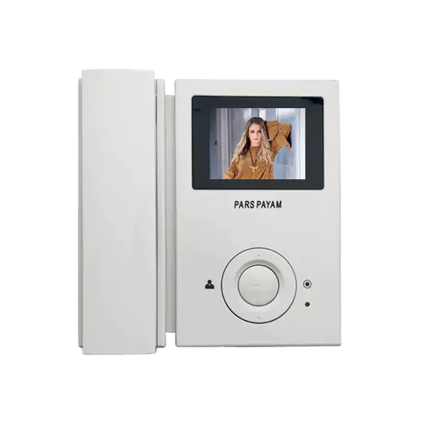 این محصول دارای نمایشگر 4.3 اینچ رنگی می باشد و ال سی دی بزرگ آن باعث دریافت تصاویر با کیفیت از پنل آیفون تصویری پارس پیام می شود.در نگاه اول متوجه ظاهر آشنا می شویم زیرا در خط تولید بسیار از تولید گران انواع آیفون تصویری وجود دارد.رابط کاربری در وسط و پایین نمایشگر قرار دارد که در چهر جهت بالا و پایین و چپ و راست فرمان را ارسال می کند. نحوه نصب این مدل بسیار آسان و با 4 رشته سیم قابل اجرا است.توسط یک براکت دیواری هم بر روی سطح دیوار و هم سطح چوب می توان نصب نمود.دهنی آن با یک سیم فنری به بدنه متصل می شود و ارتباط رفت و آمد صدا از این طریق انجام می پذیرد.تغذیه این مدل 220 ولت است و جهت حفاظت در برابر نوسانات برق می توان از محافظ برق آیفون تصویری استفاده نمود.