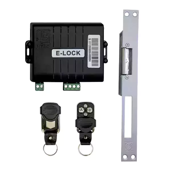 در بسیاری از ورودی های شرکت ها و اماکن تجاری و اداری احتیاج به باز کردن درب به وسیله ریموت می باشد و این کار با تهیه این پکیج قابل اجرا است.پکیج کنترل تردد ریموتی ایرانی در فروشگاه دکاشاپ عرضه می شود و در این پکیج کنترل تردد ریموتی درب چوبی یک عدد قفل برقی مقابل قرار داده شده که بنا بر موجودی از نوع قفل مقابل برقی الکتروپیک و یا قفل مقابل برقی تابا می باشد و یک ماژول ریموتی بتا که دارای ترانس و دو عدد ریموت کنترل می باشد قرار داده شده است.برای استفاده بر روی انواع درب چوبی و فلزی می توان استفاده نمود فقط بایستی این درب ها از نوع ضد سرقت نباشند.اجرای فرمان ریموت این محصول تا 30متر است و به راحتی فرمان باز شدن را صادر می نماید.تعداد ریموت اضافه نیز می توان به آن اضافه نمود.