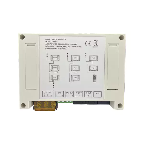 جهت اجرای پلن آیفون تصویری کدینگ الکتروپیک بایستی از ترانس و منیع تغذیه مربوط به همان پلن استفاده نماییم.دارای ورودی برق 220 ولت توسط سیم رشته ای می باشد و امکان اتصال باطری برای برق اضطراری آیفون تصویری فراهم است که ترمینال آن نیز قرار داده شده و کنار آن هم خروجی جهت برق باطری است.